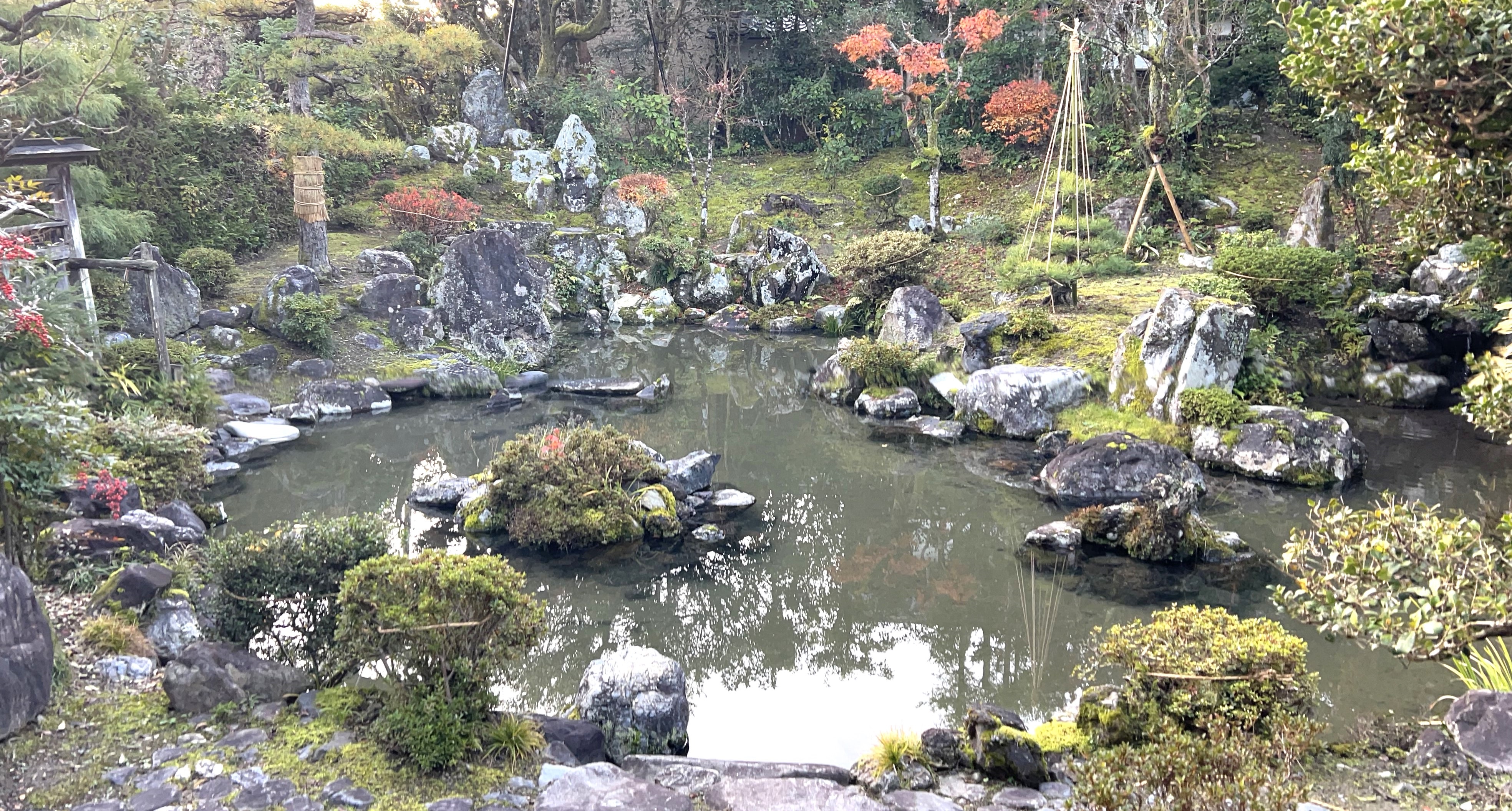 日本庭園との間係で考察すると親鸞を開祖とする浄土真宗は民衆の宗教であり、民衆を救済するための教理を説法する道場の庭である。