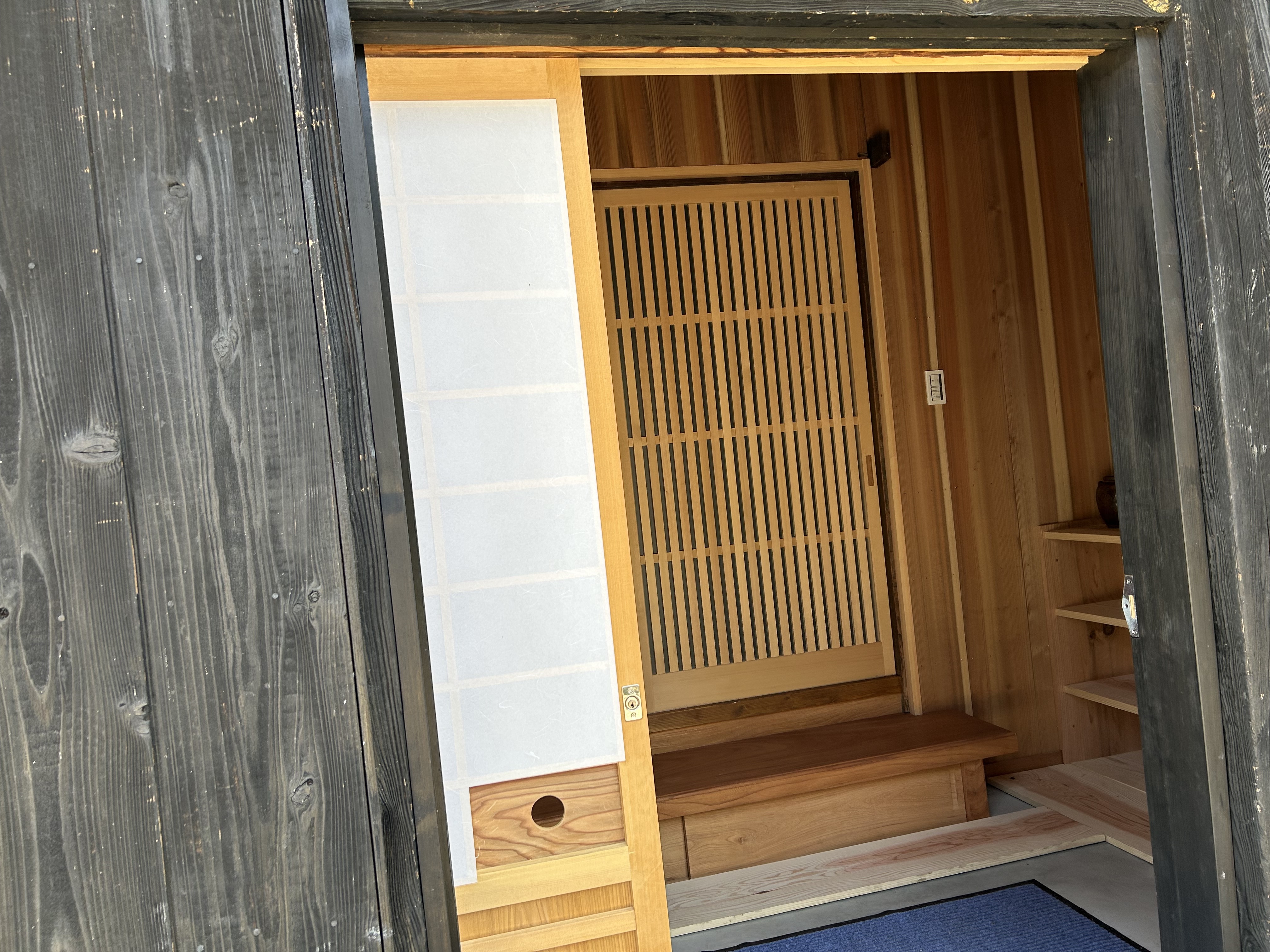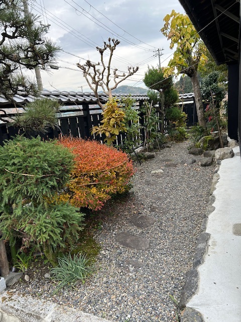 露地は青桐・百日紅が植栽され敷石など煎茶の決まり事を有している。